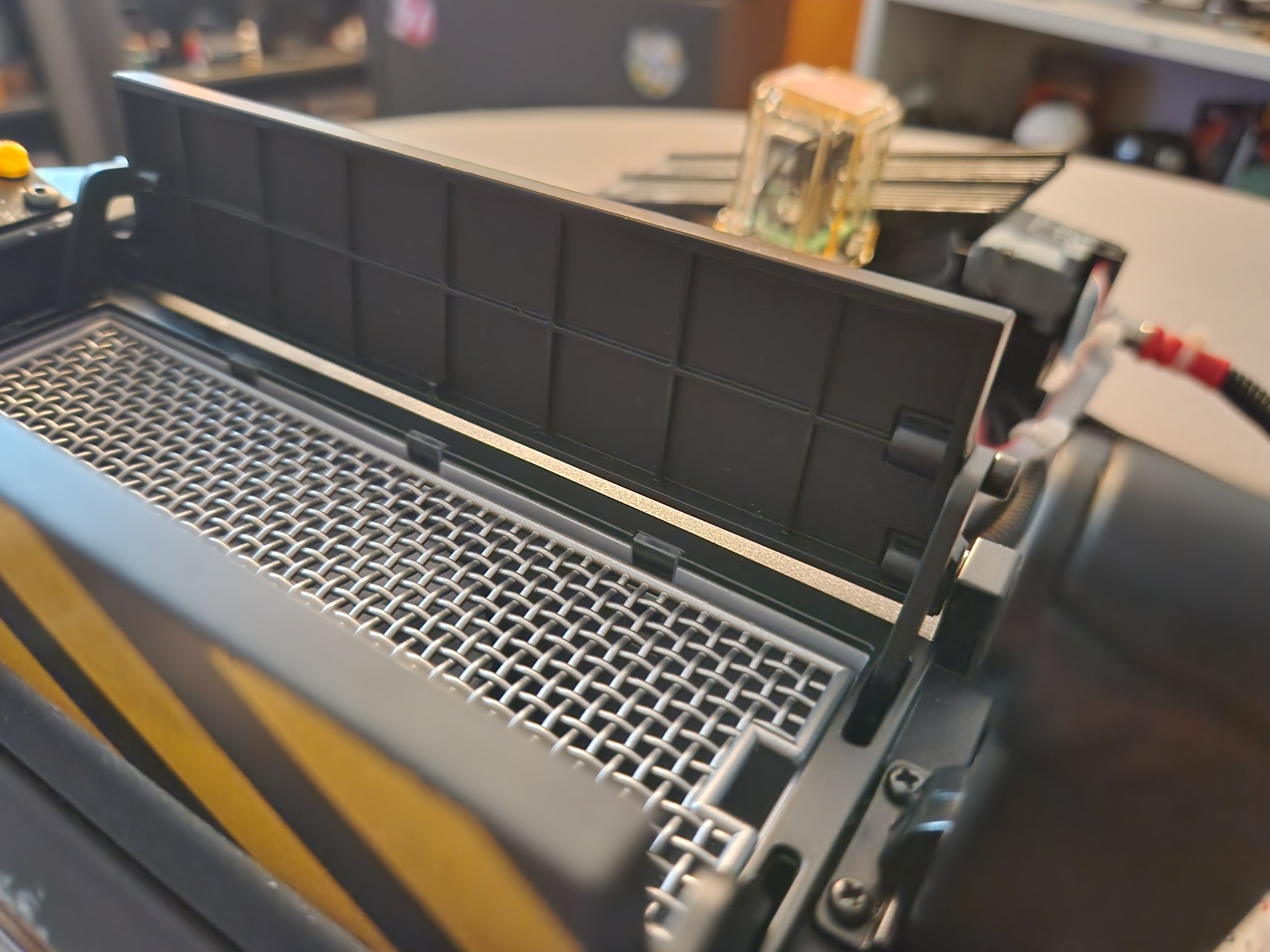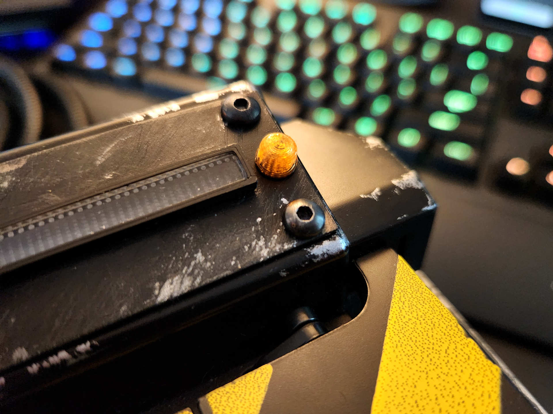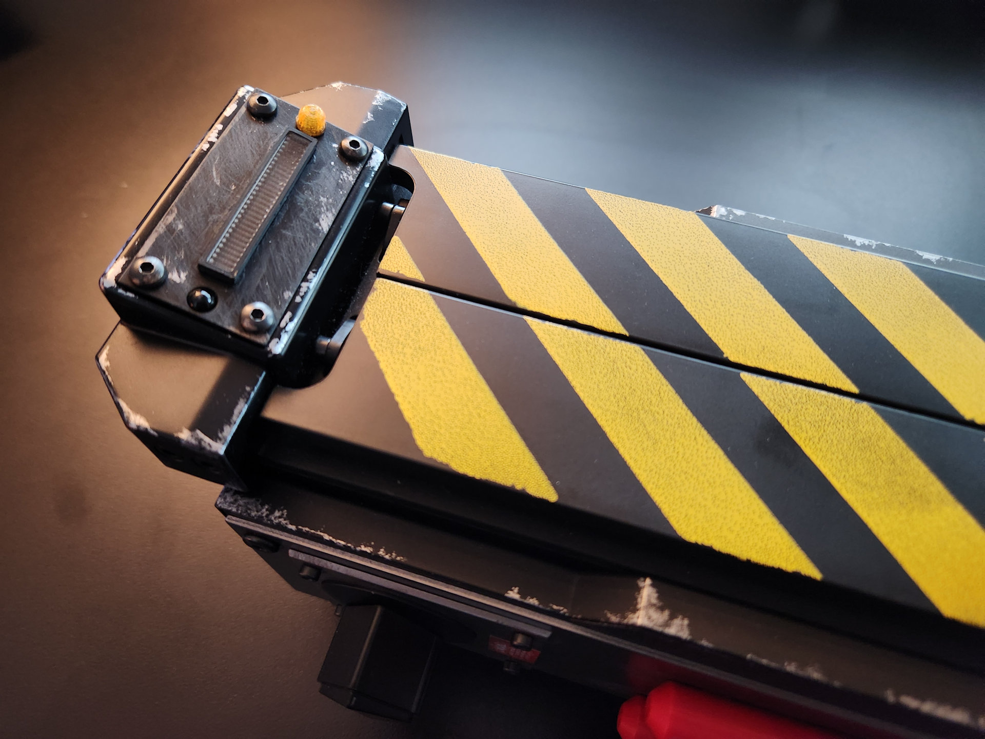 I never liked the sunken LED next to the bar graph , another misstep by Hasbro if you ask me, that should have been included stock. After grabbing most of Doug’s previous mods for the trap, I asked him if he ever thought of creating an LED lens for the trap that would more closely resemble the one seen in all the reference photos of the screen used traps. Within a few days, he had created and printed a fix that looks incredible. The little orange lens even has a black area at the bottom, which makes it look even more realistic. You do have to enlarge the stock hole just a bit, but it was super easy. I added just a bit of super glue to hold it in place and the end result is pretty cool.