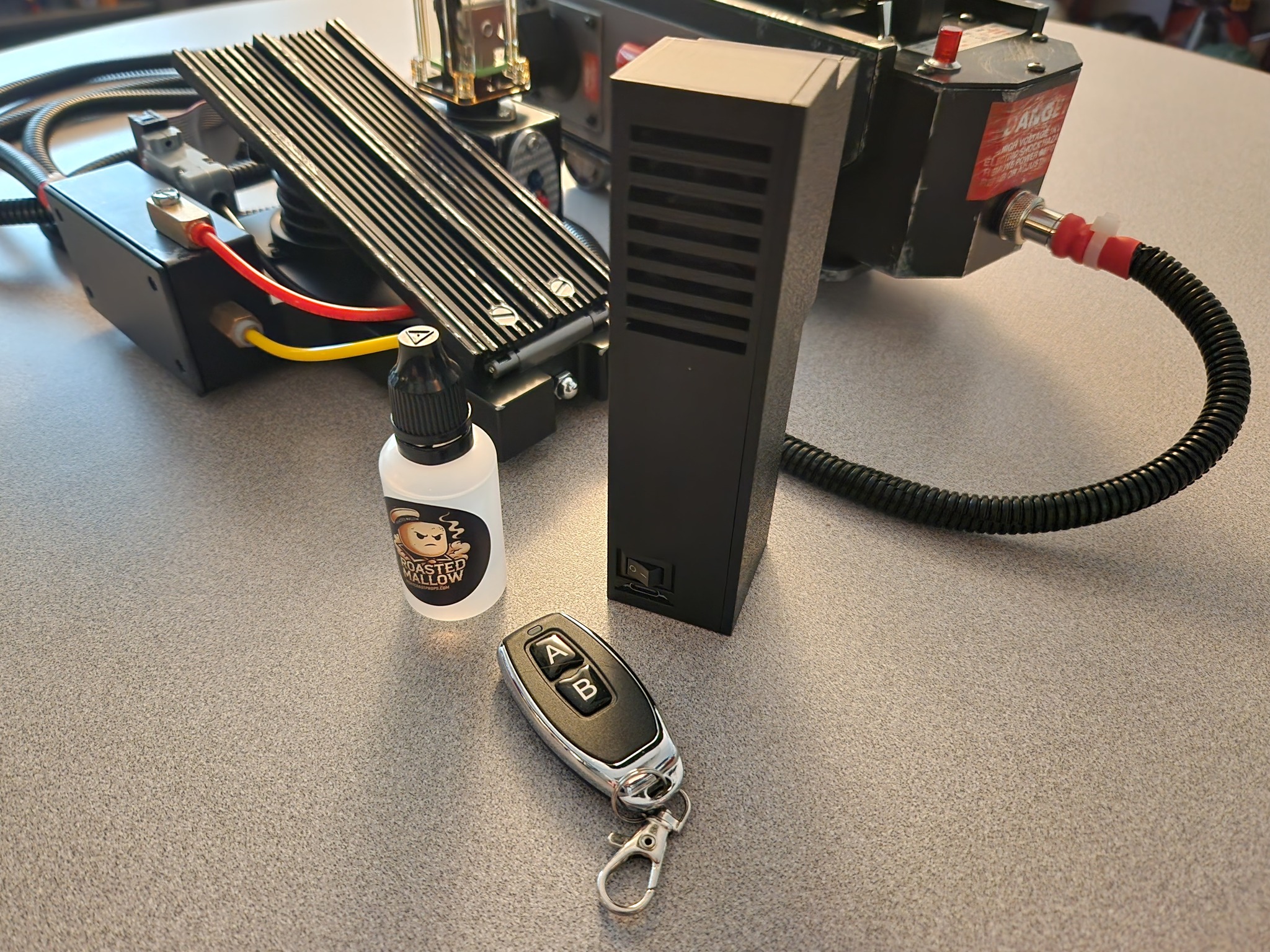 With two settings on the pedal trigger, I can choose to start and stop the fogger on pedal push, or to trigger the smoke after the trap closes. I can’t decide which I like more, but it’s nice that I have the option to choose. I can also start and stop the fogger with the included remote.